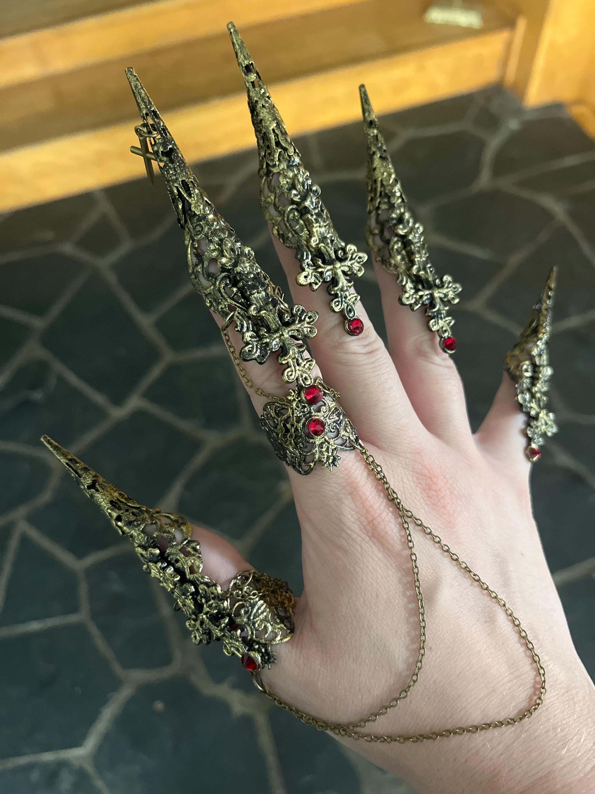 Metal finger claws and rings made of aluminum, decorated with crosses.