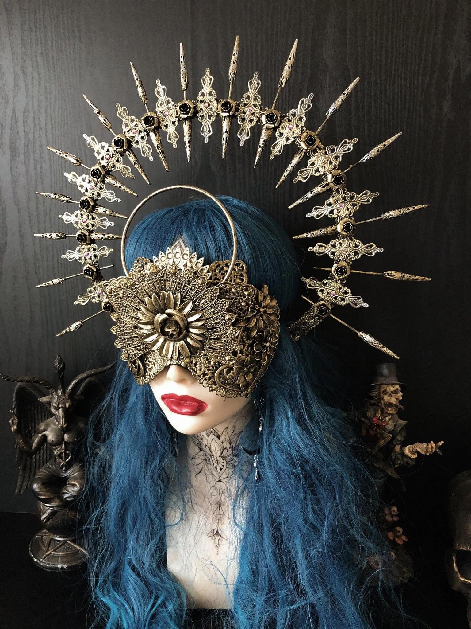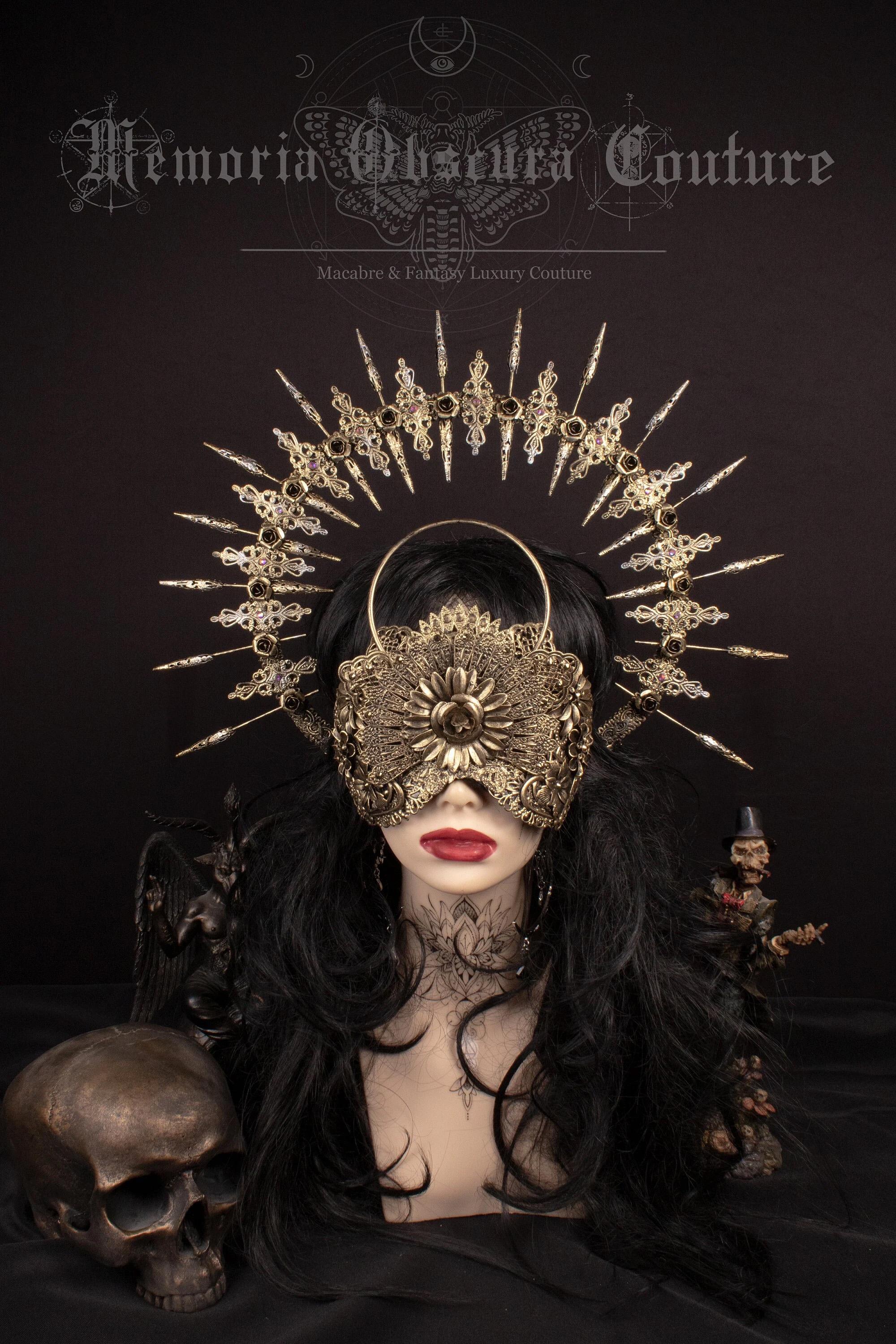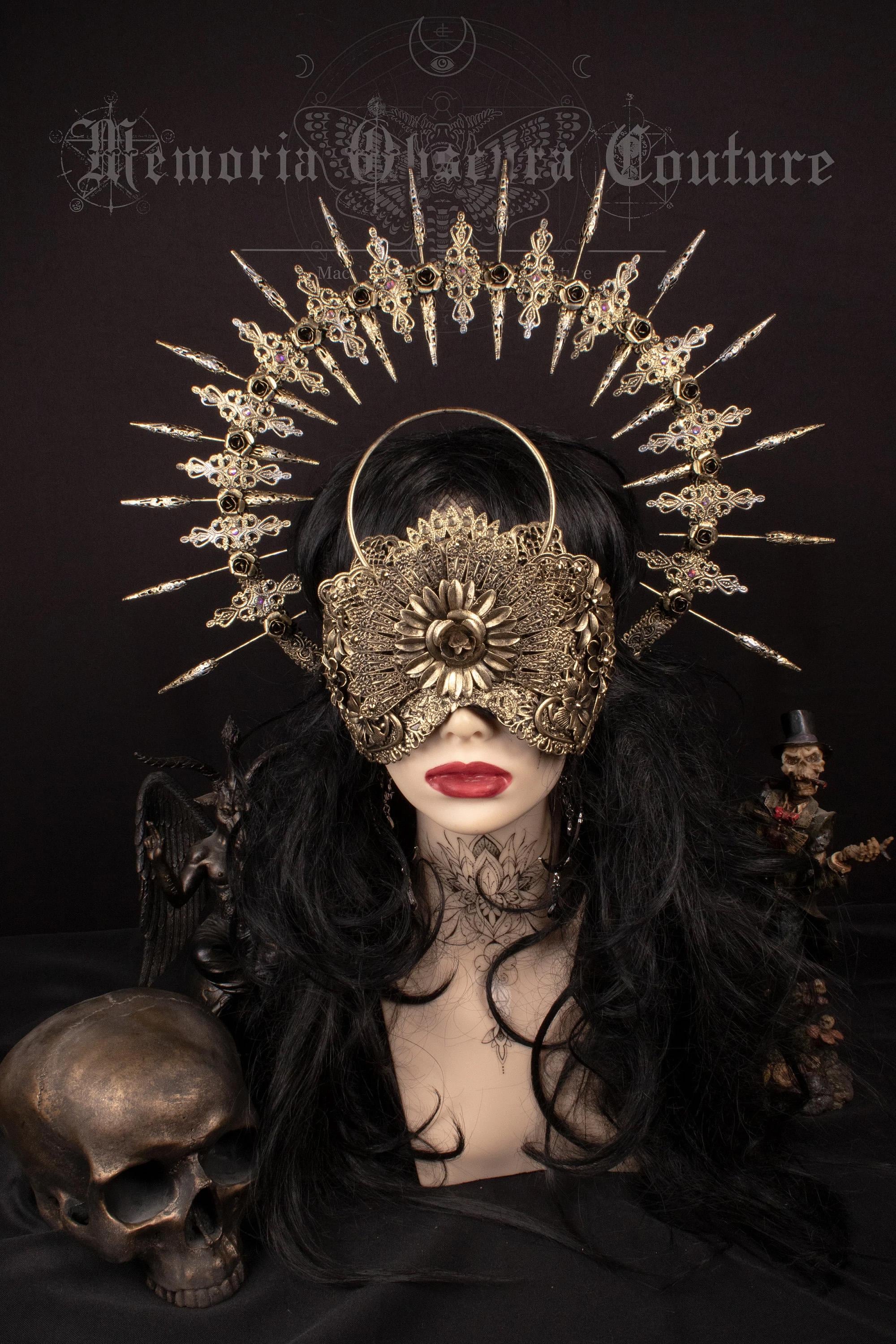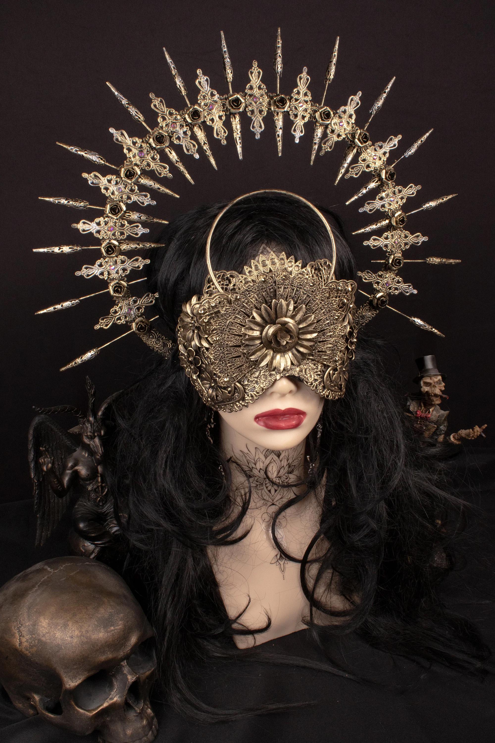Set consisting of blind mask with integrated halo and halo headdress.
