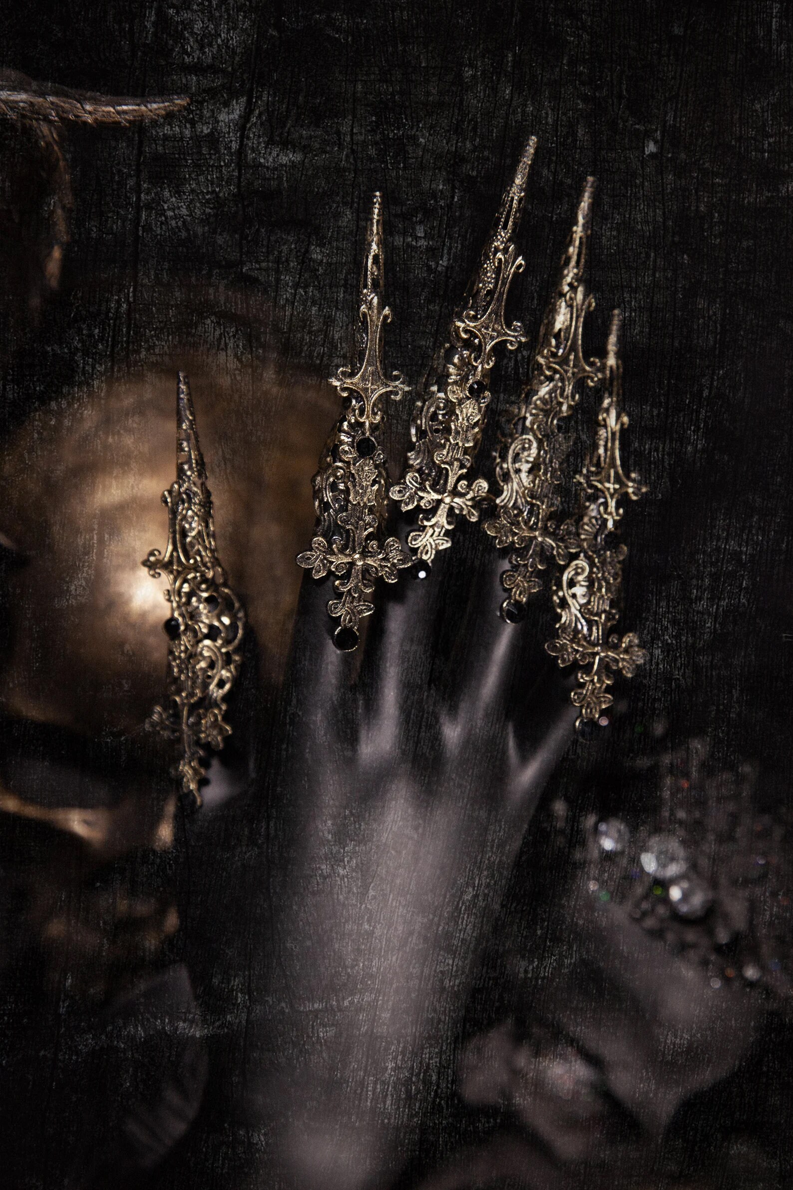 The finger claws (supplied for one hand) are bent and decorated by hand from aluminum ornaments.