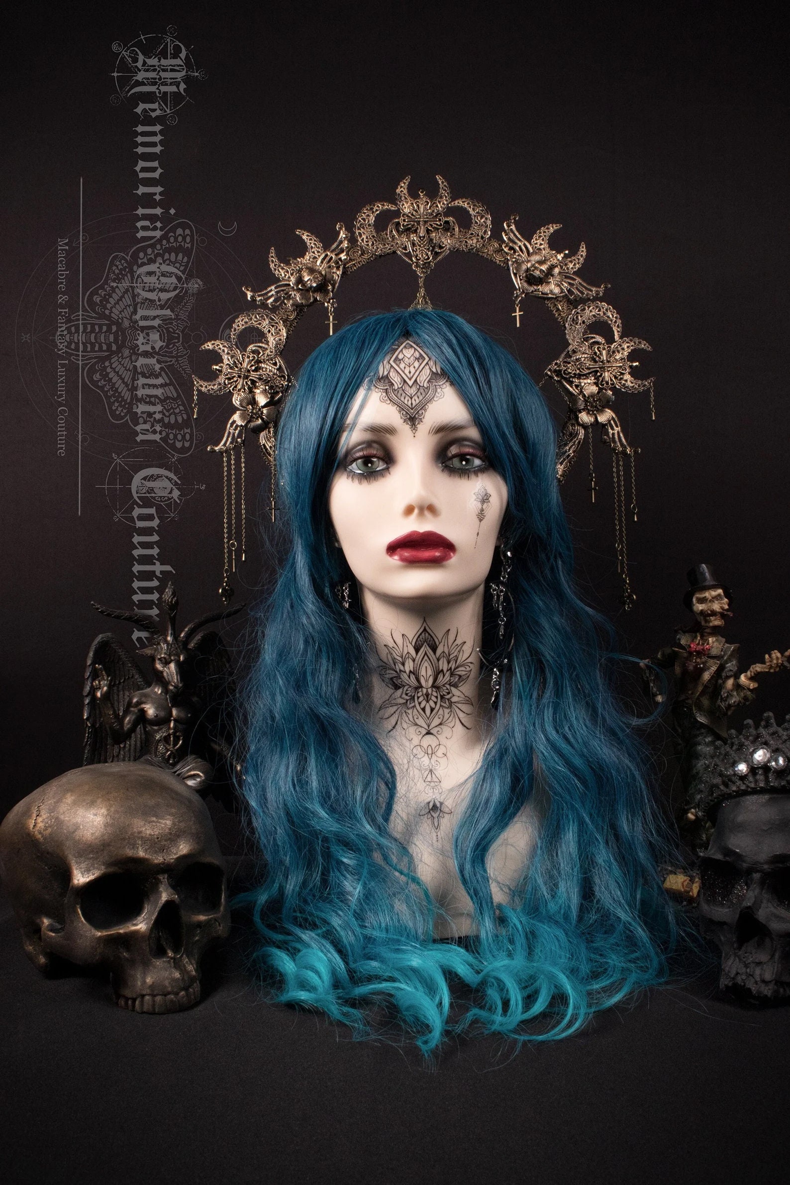 Decorated with skeleton hands, skulls, chains and delicate aluminum metal ornaments.