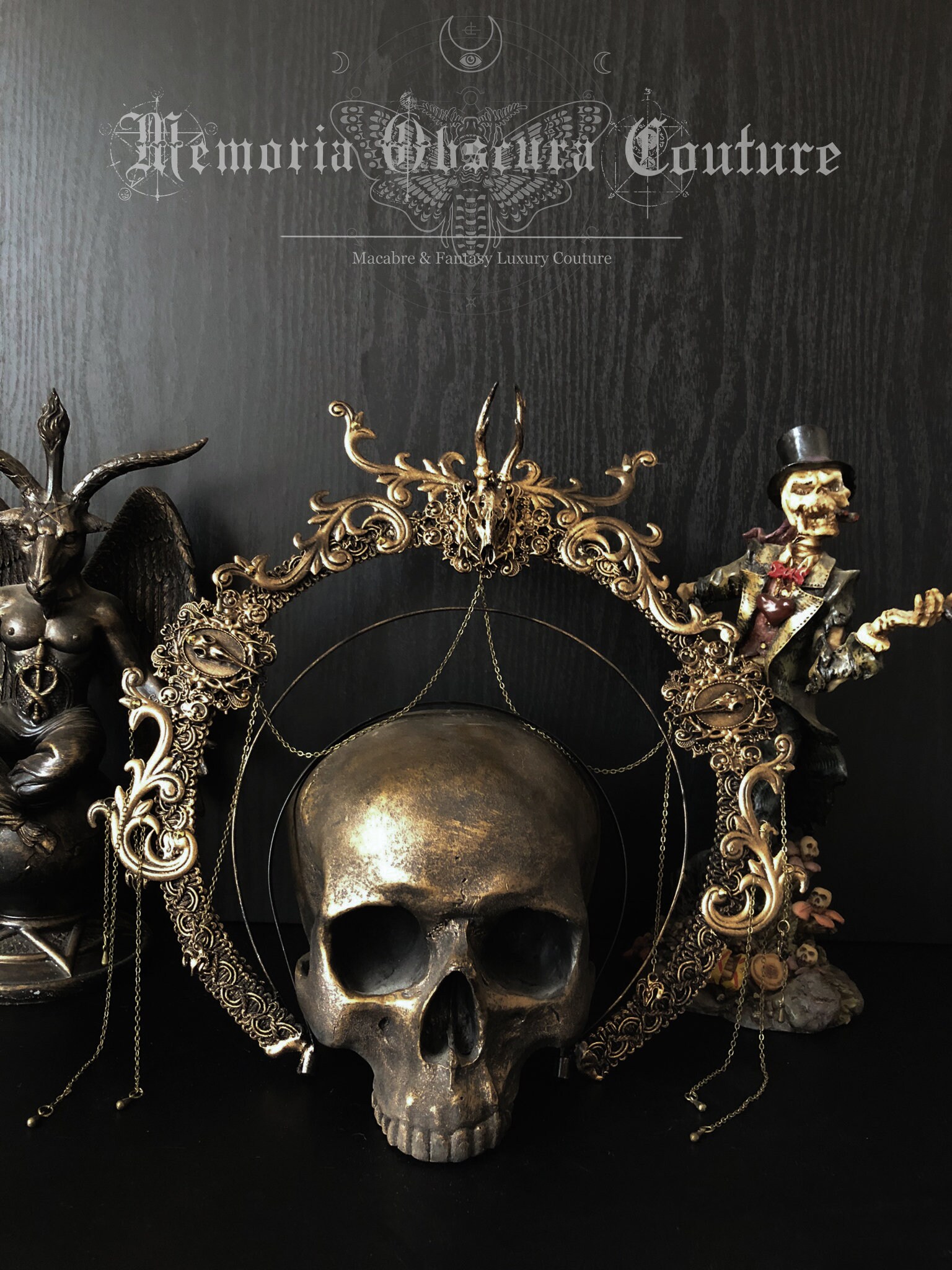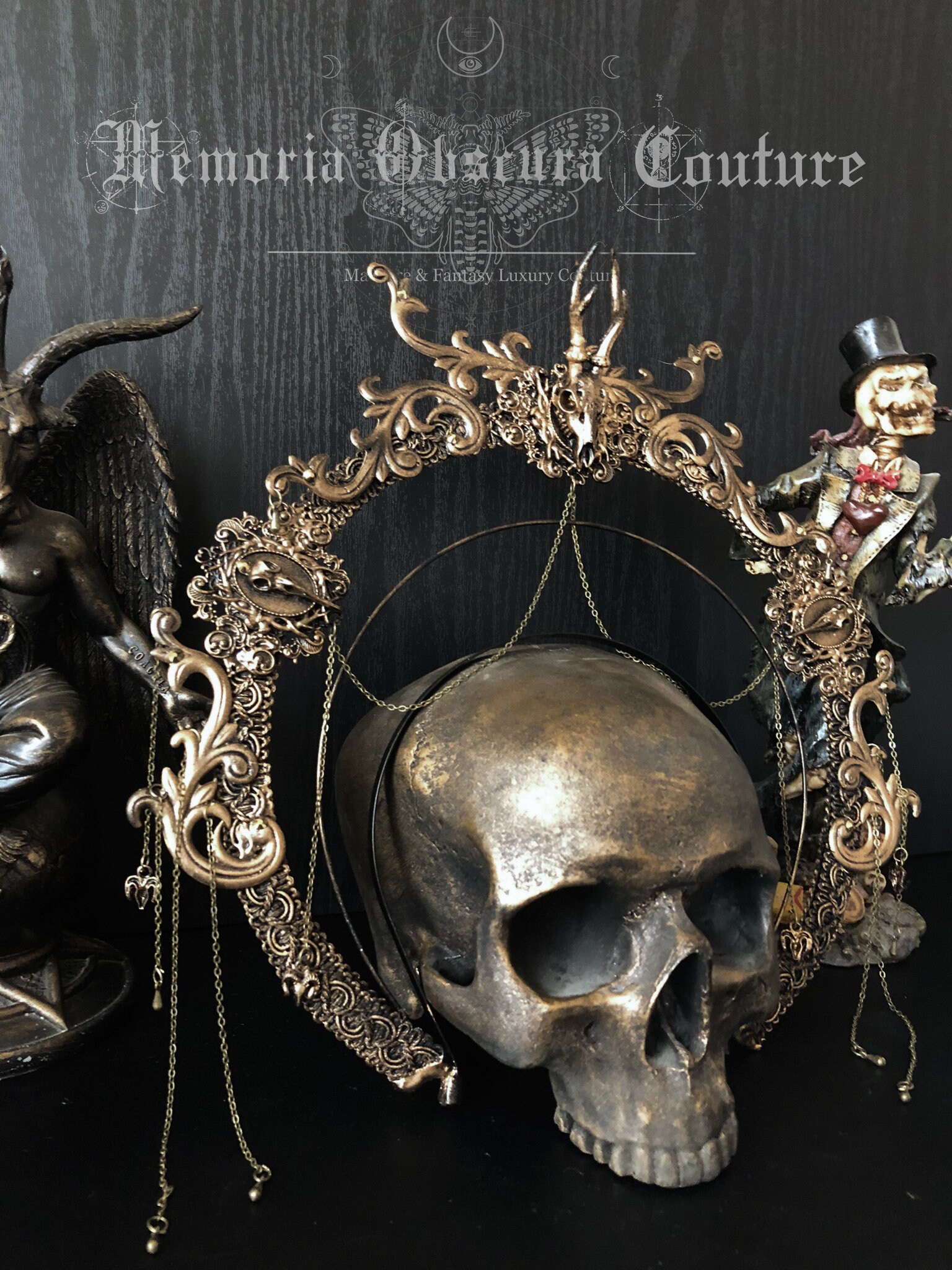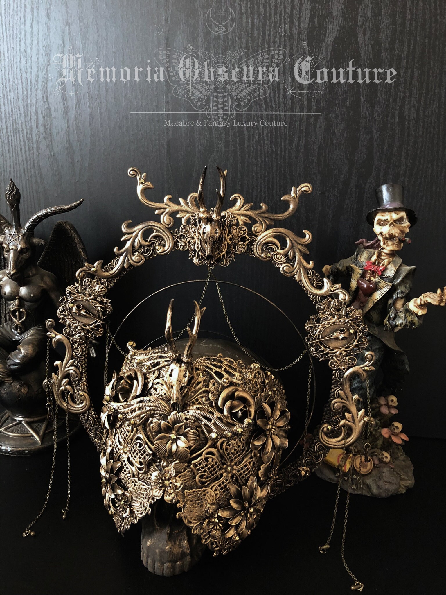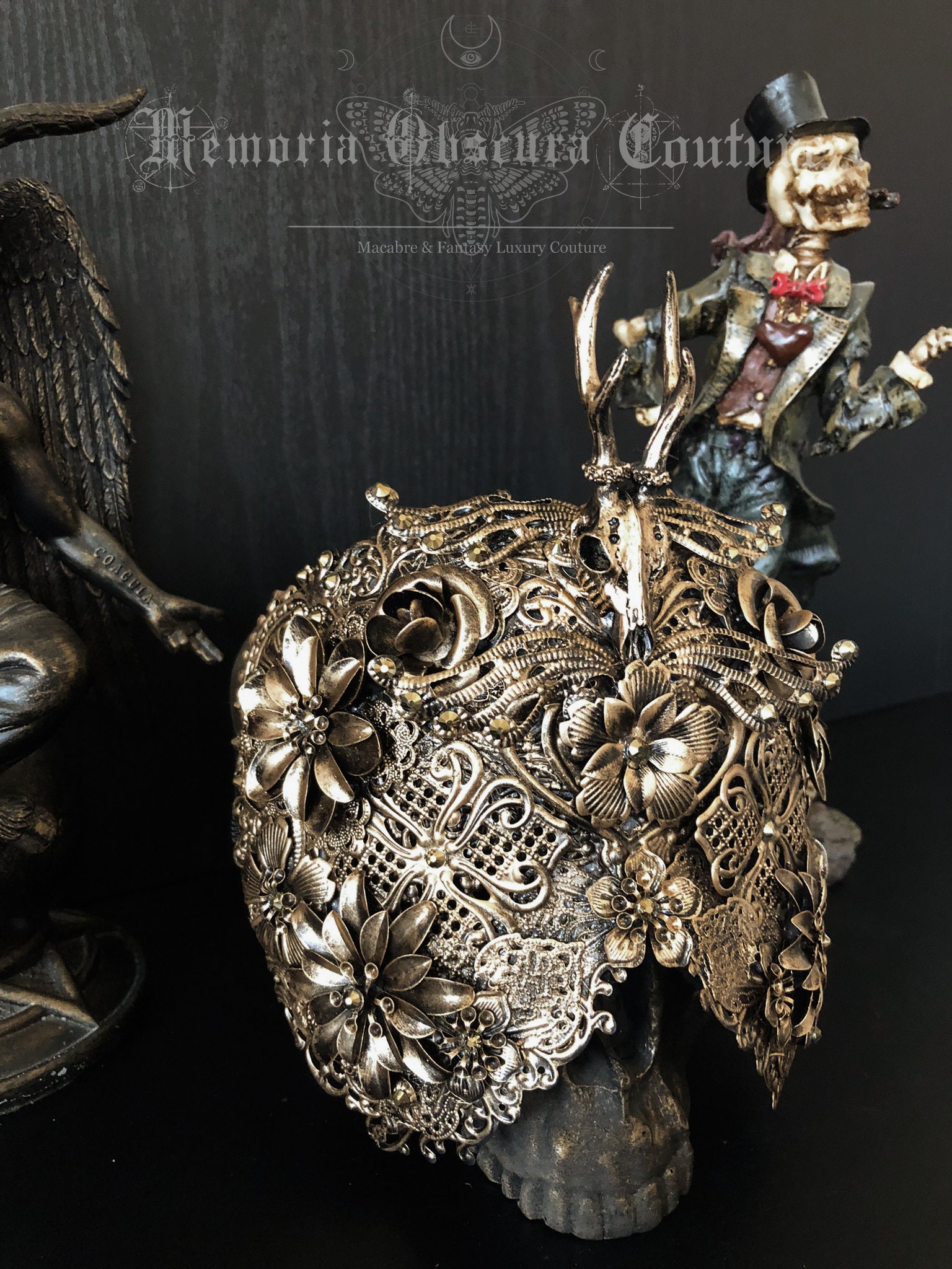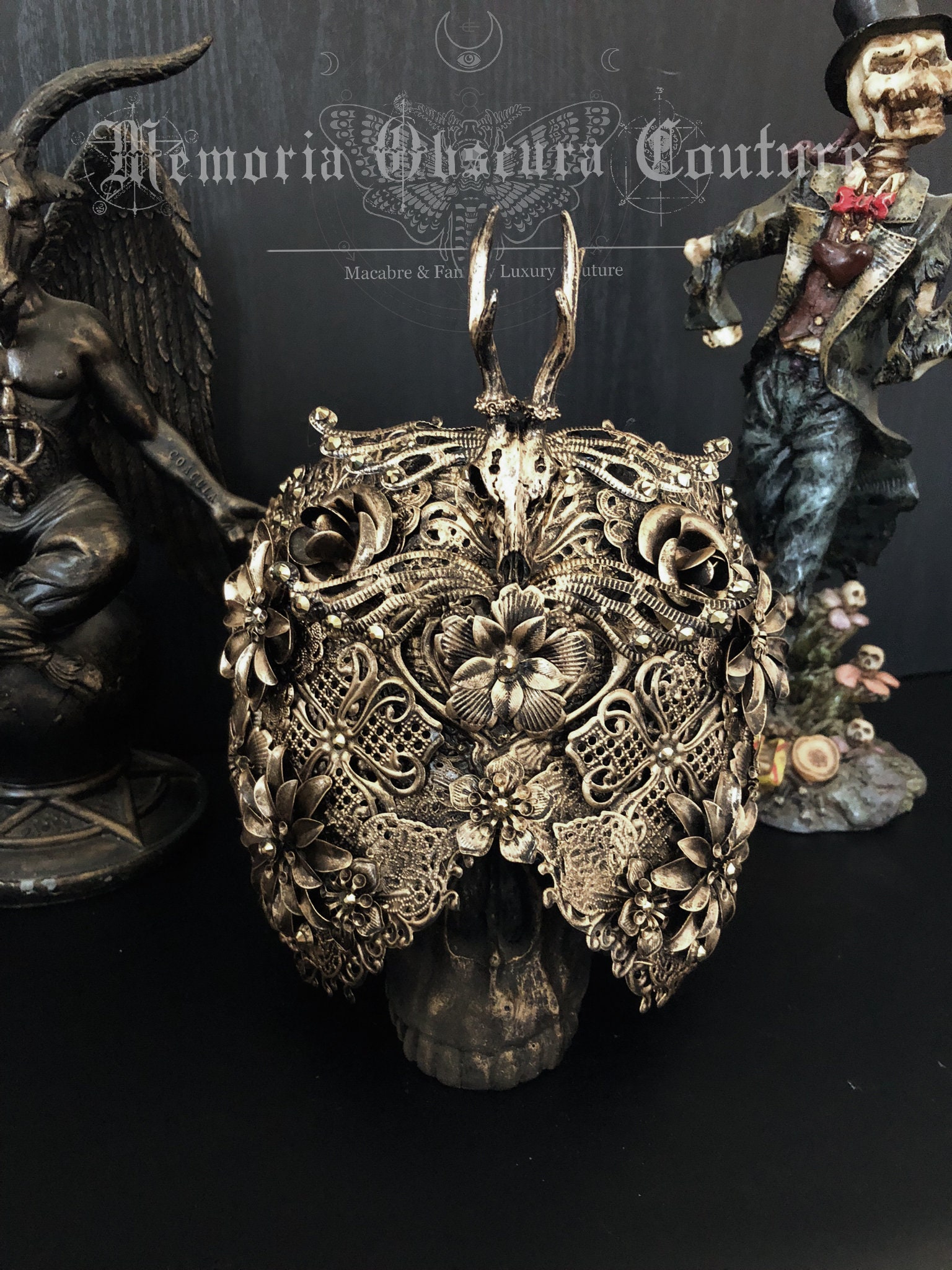 Both items are decorated with lightweight metal ornaments and resin-cast deer skulls.