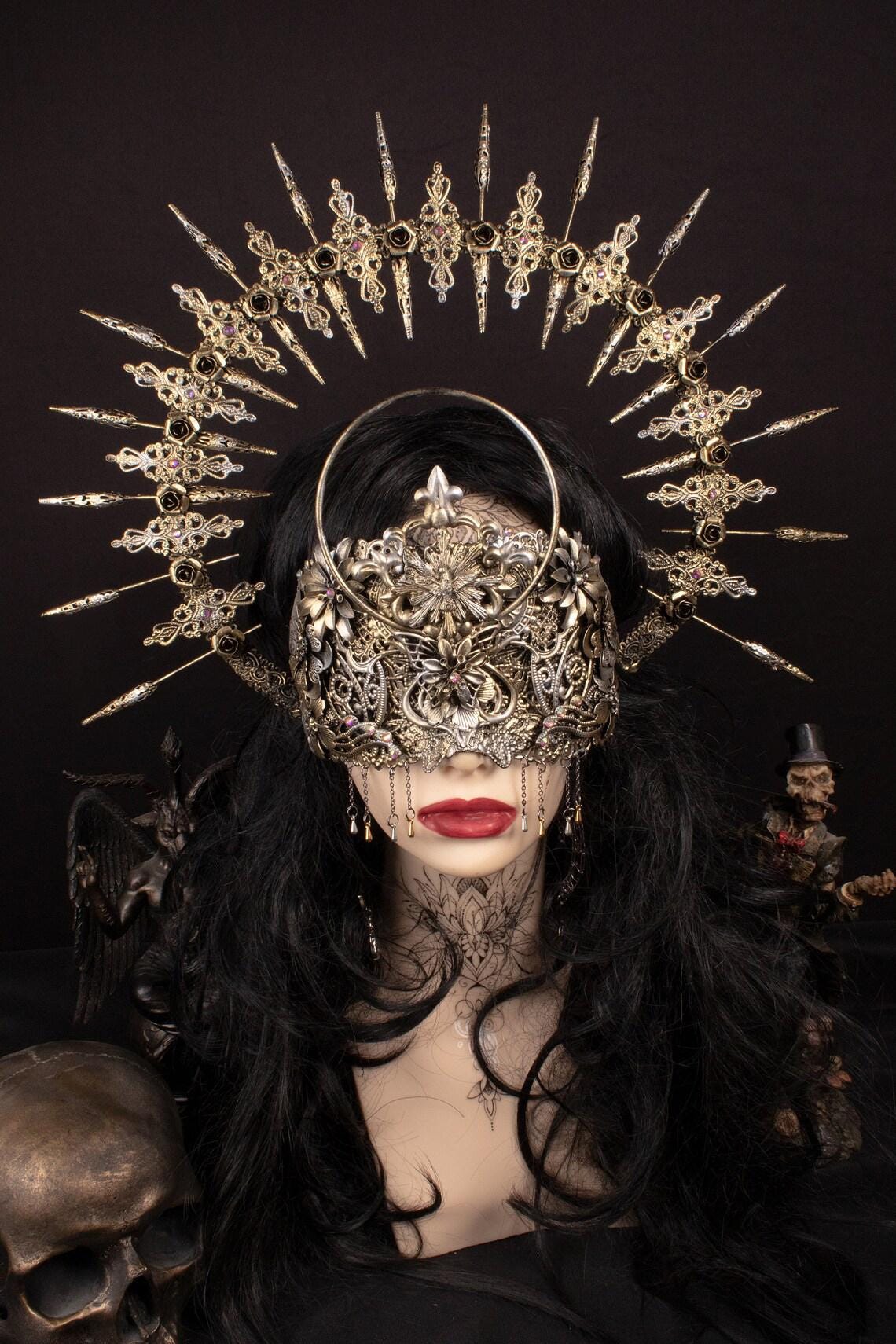 Set consisting of halo blind mask and sunburst halo headpiece.